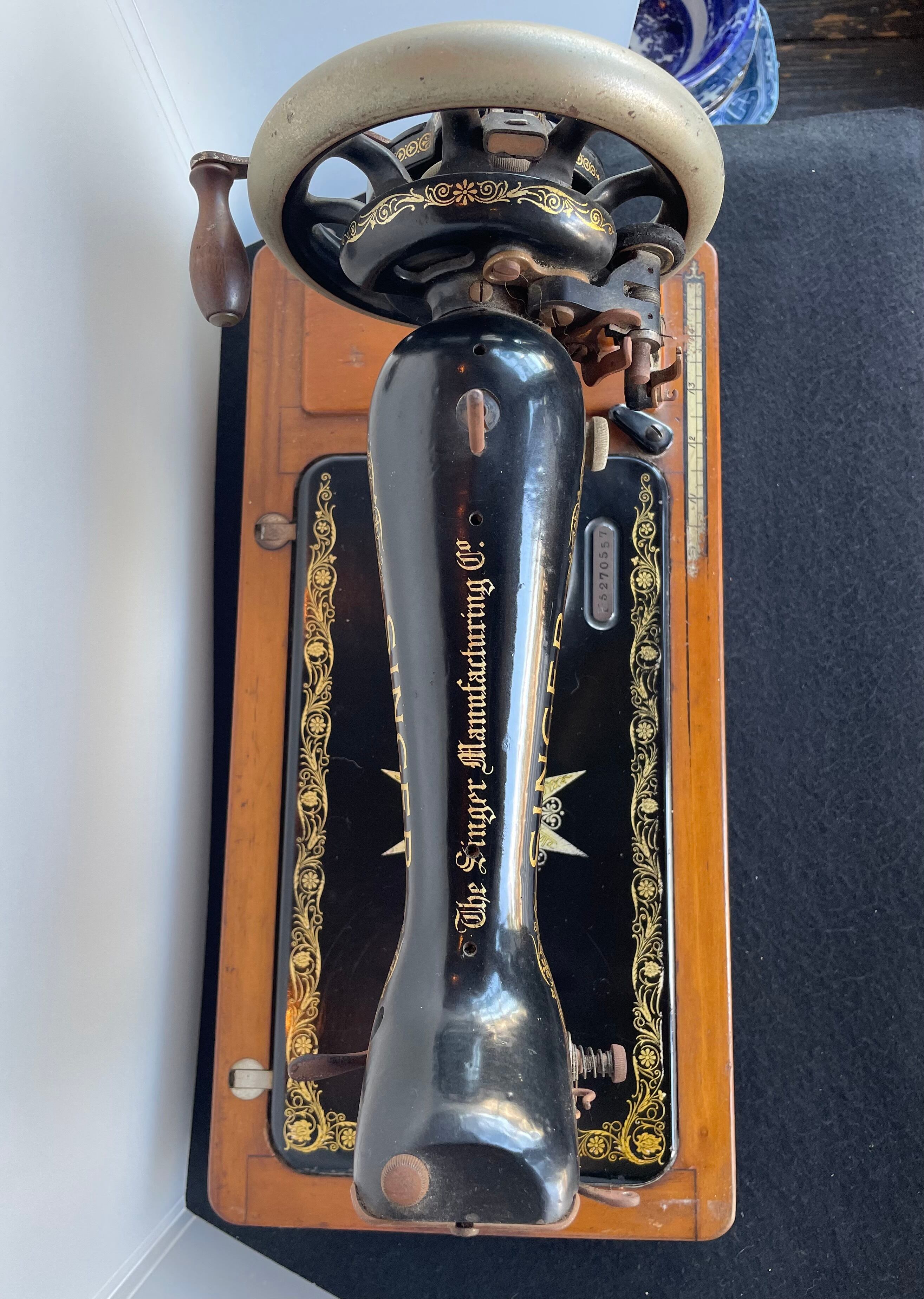 アンティーク卓上型 SINGERの手廻し(手回し)式ミシン。