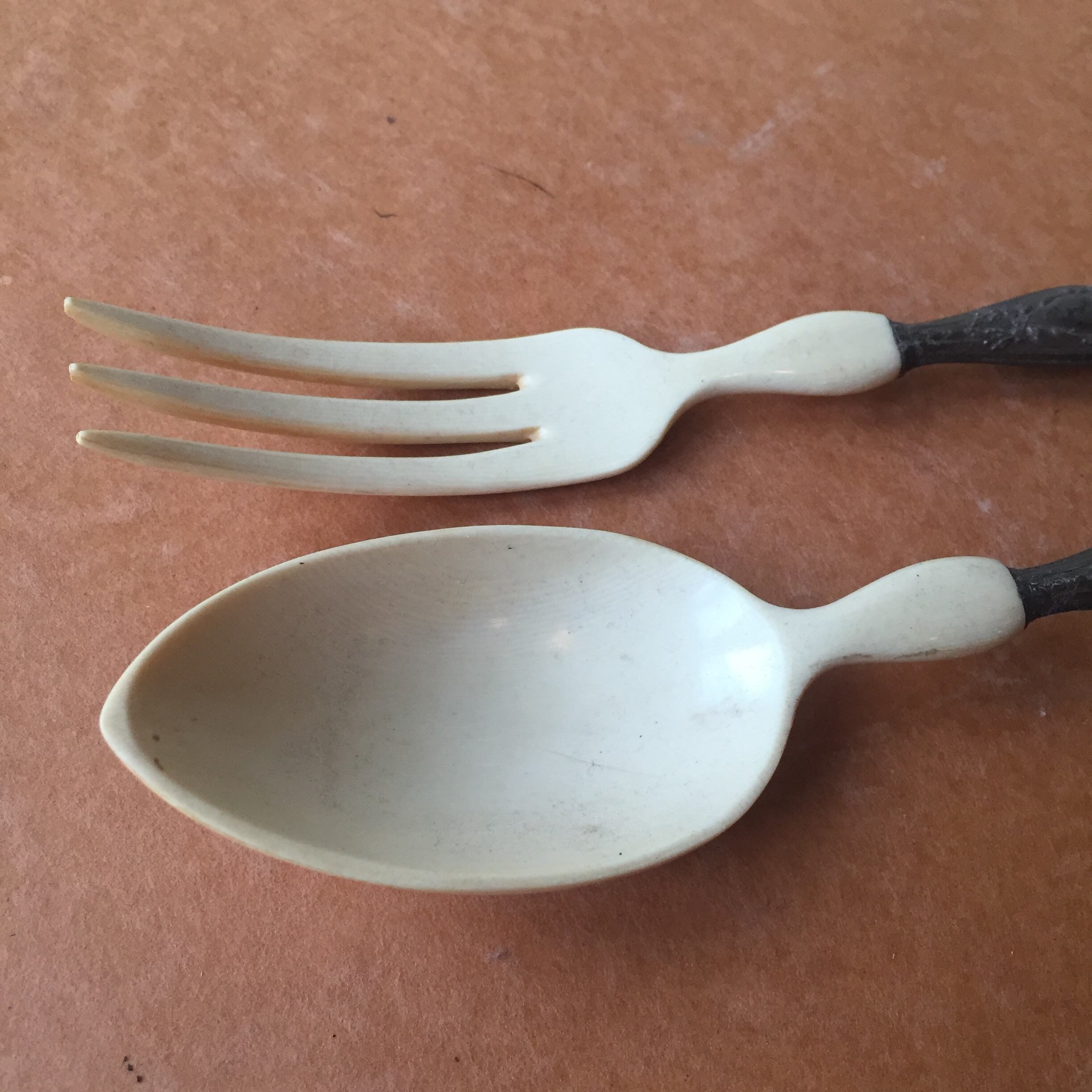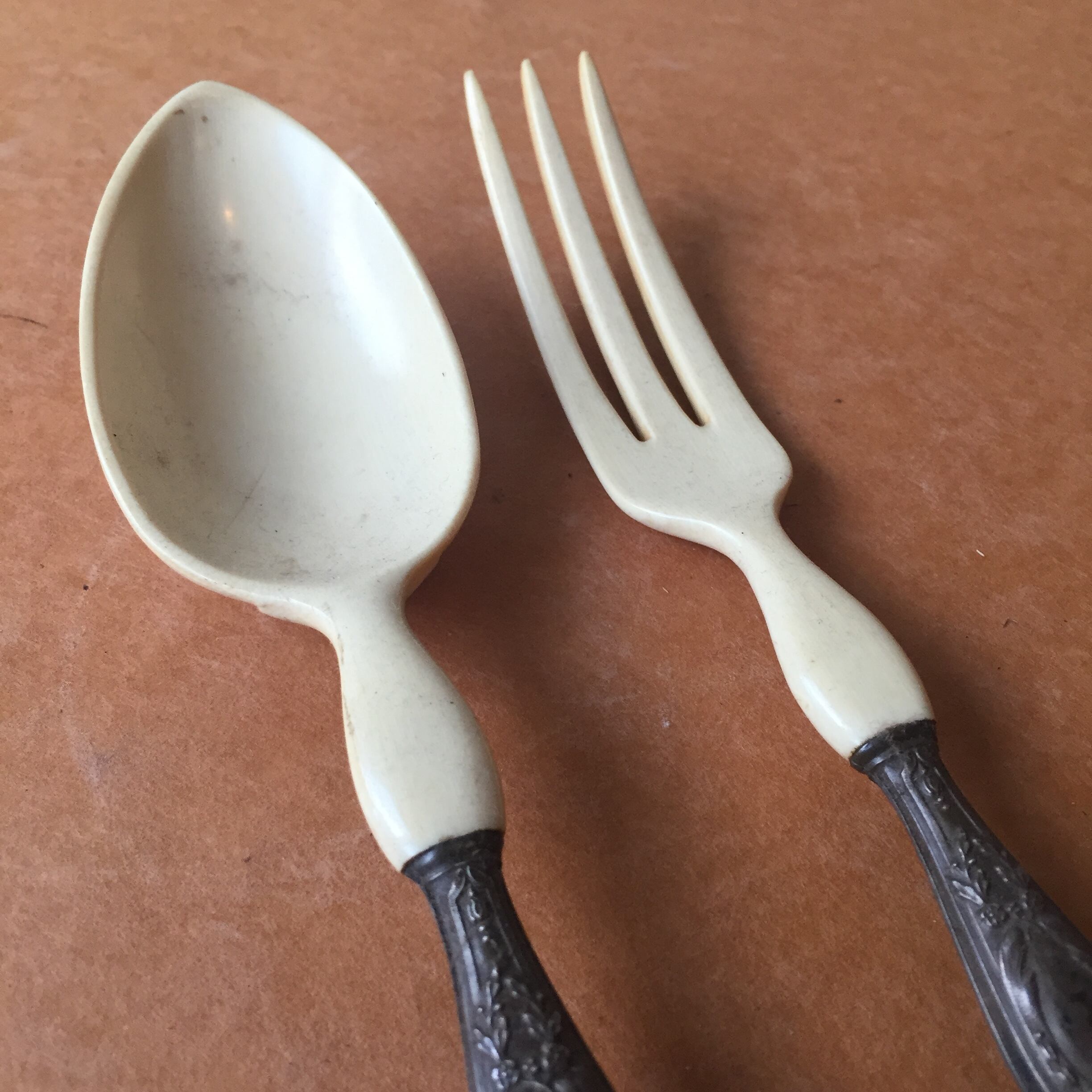 フランス アンティーク 象牙+シルバー サラダサーバー
