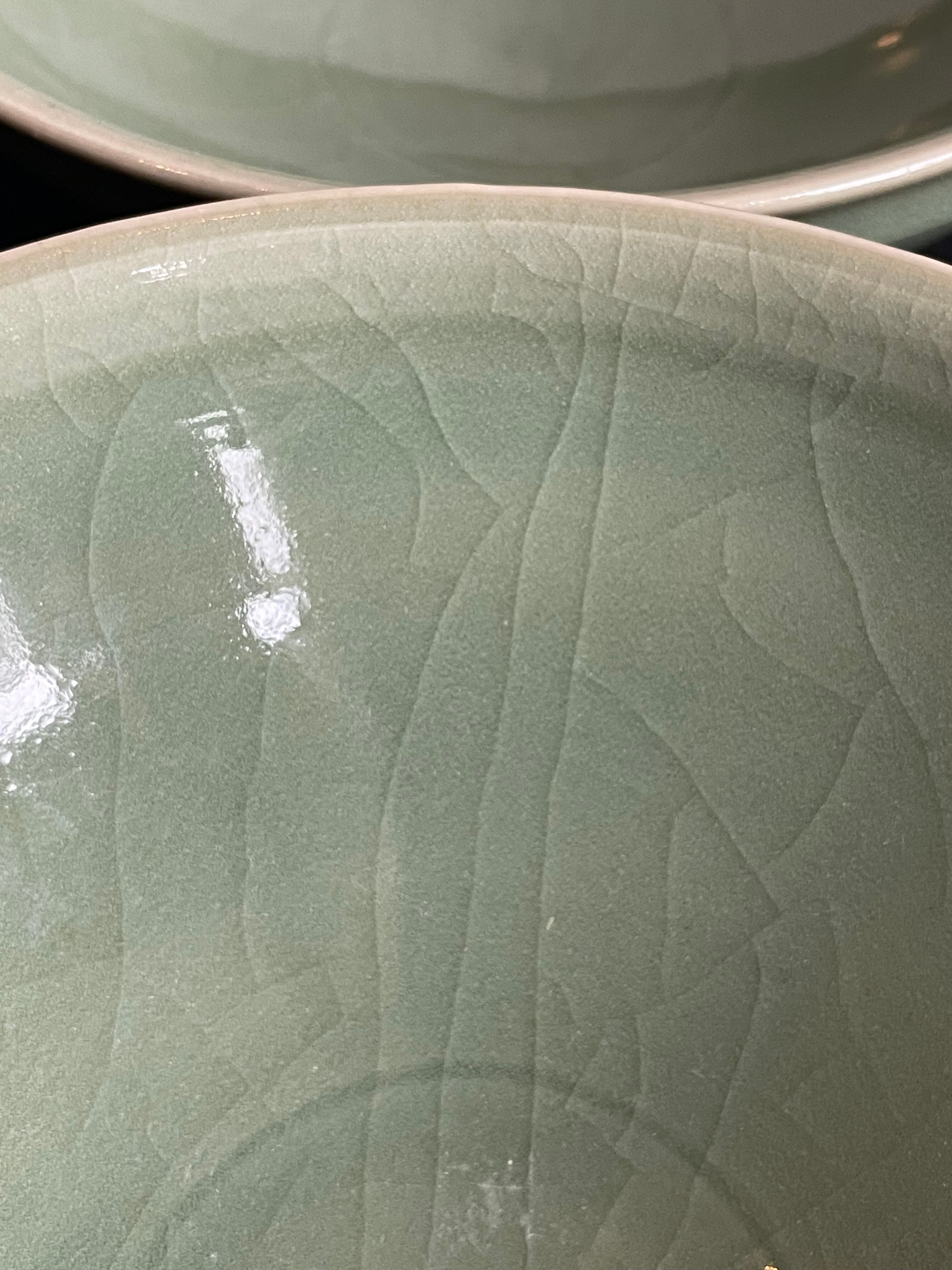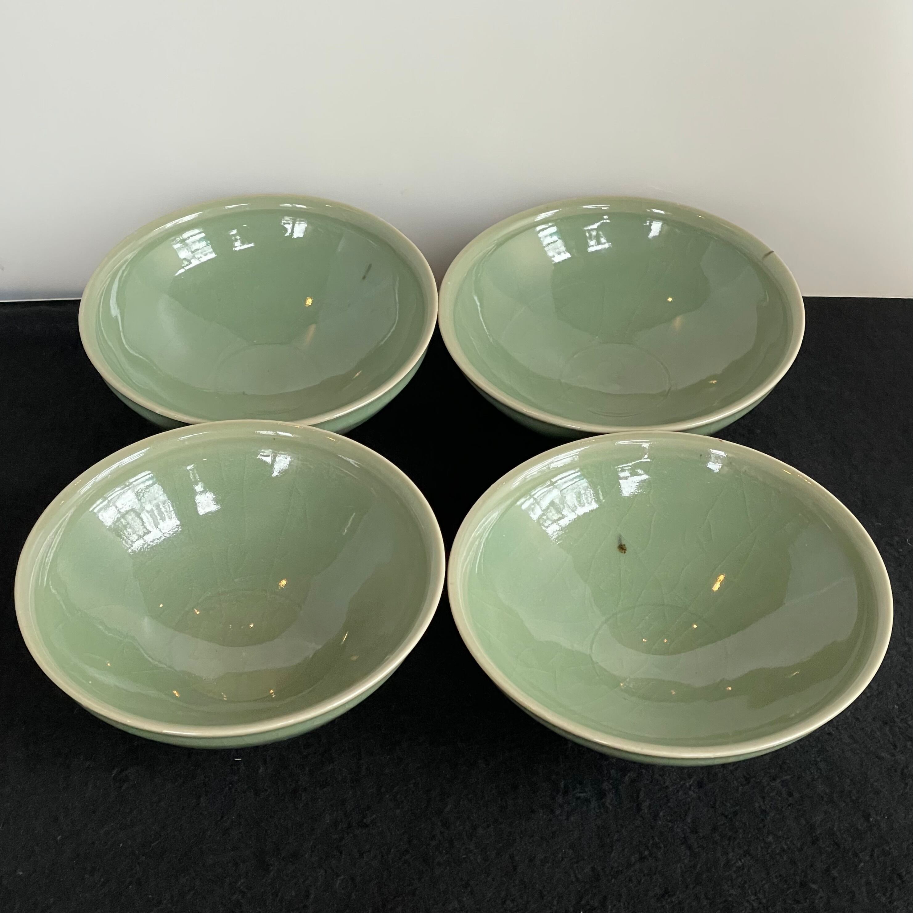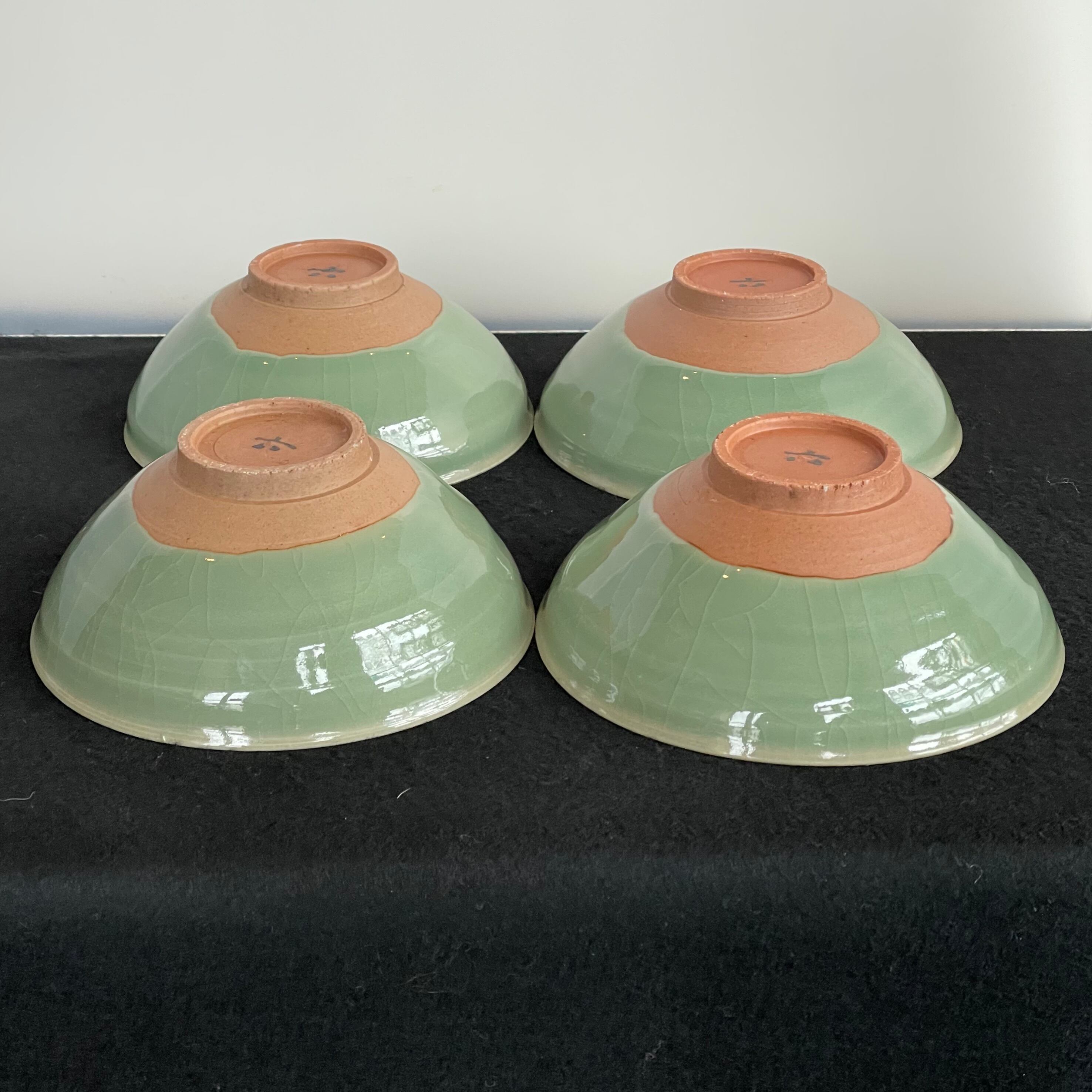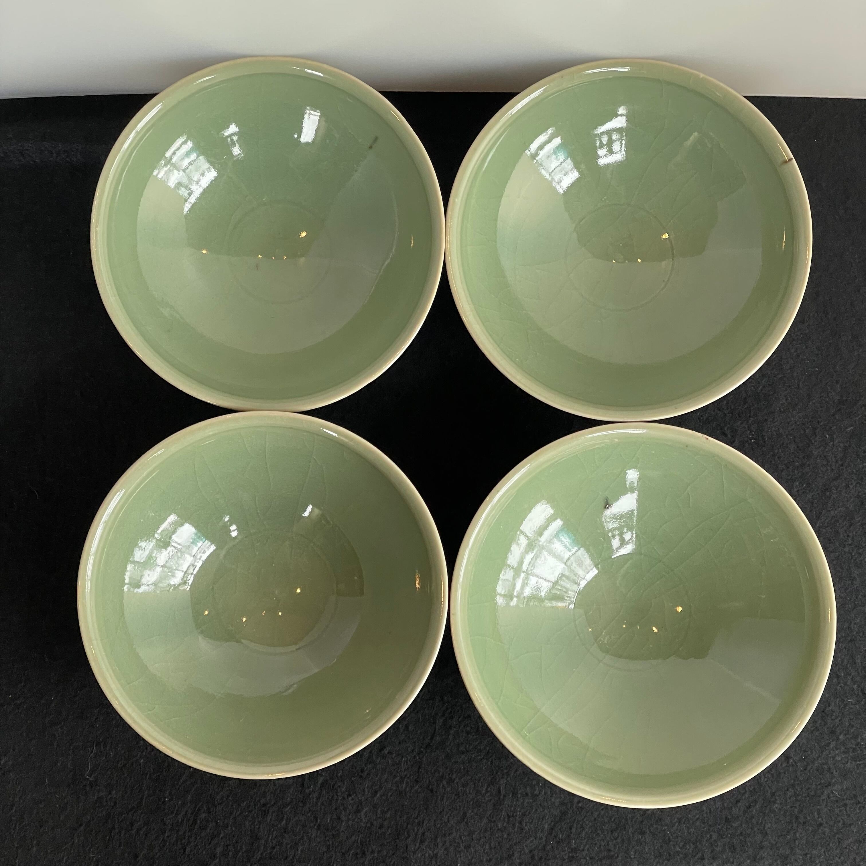 旧家より譲り受けた翡翠色の青磁、中鉢(平茶碗)4客。