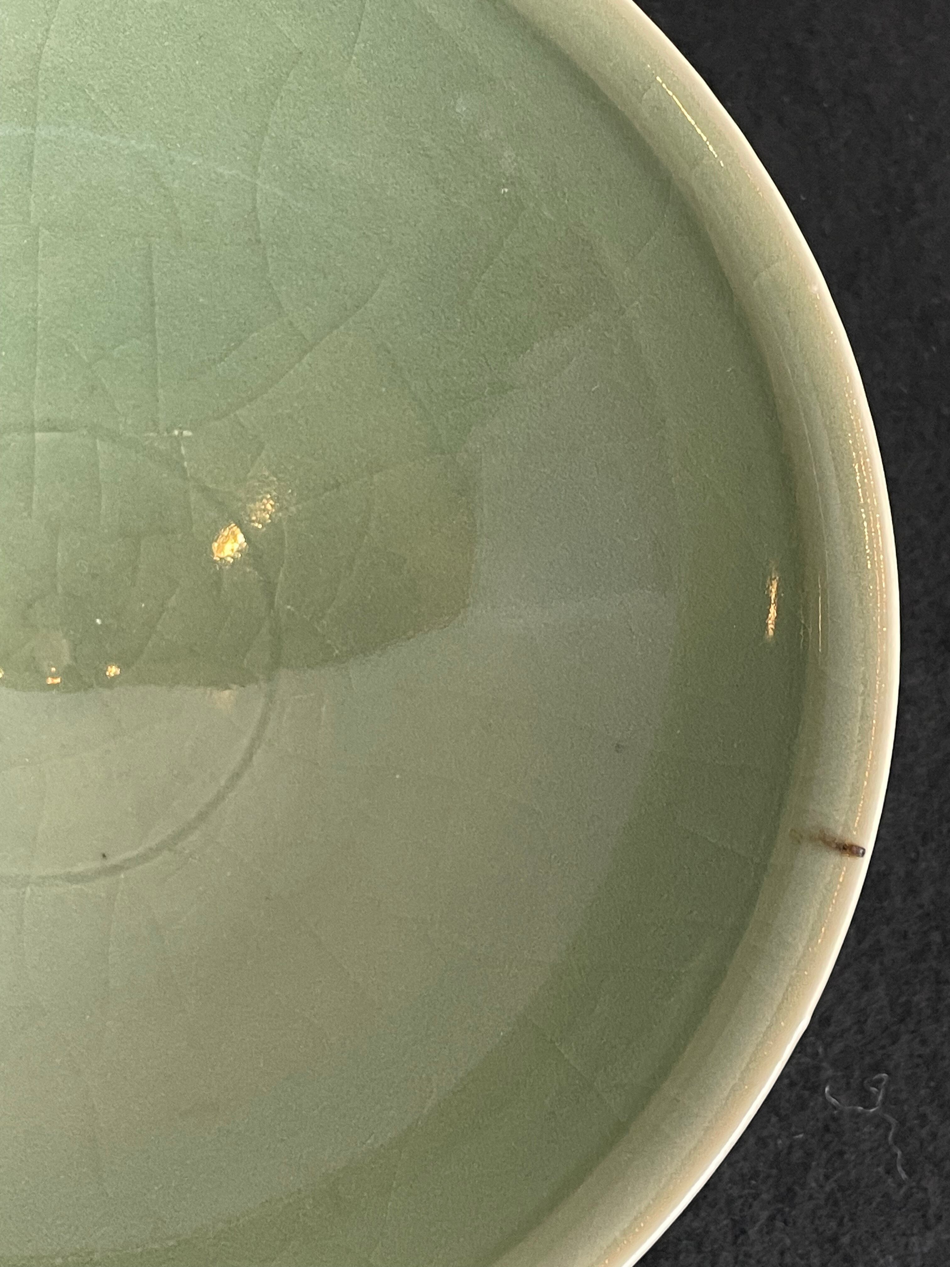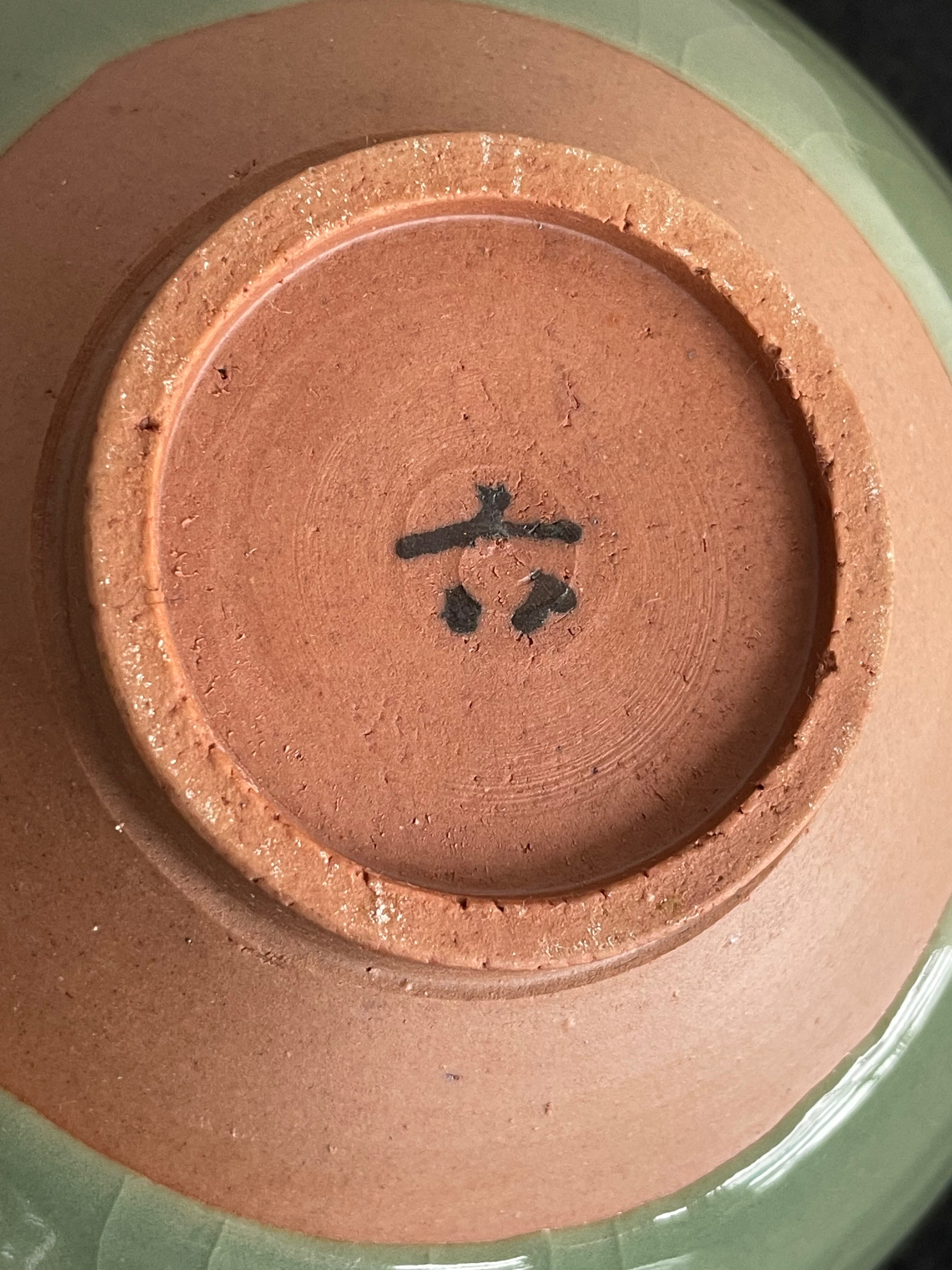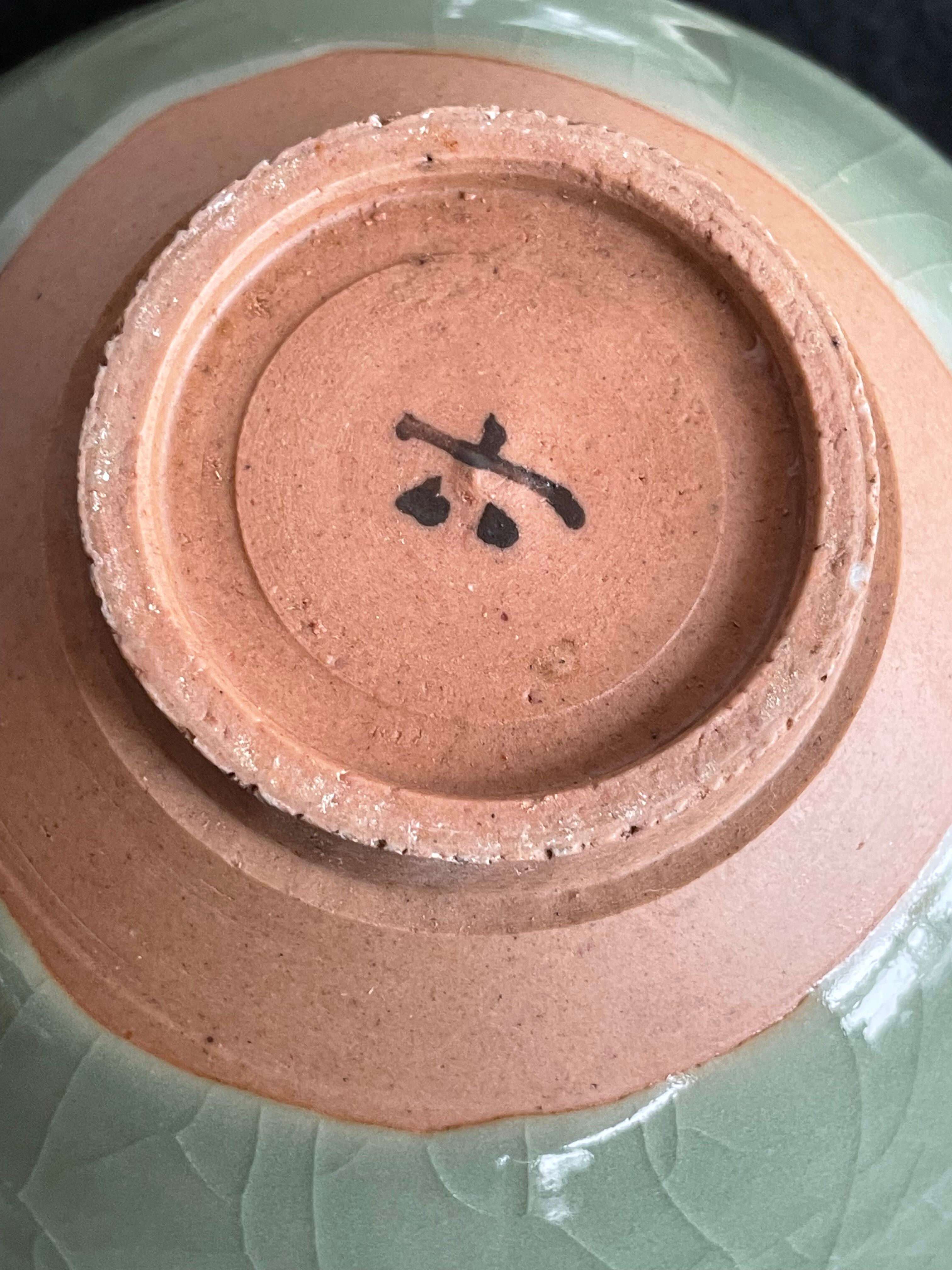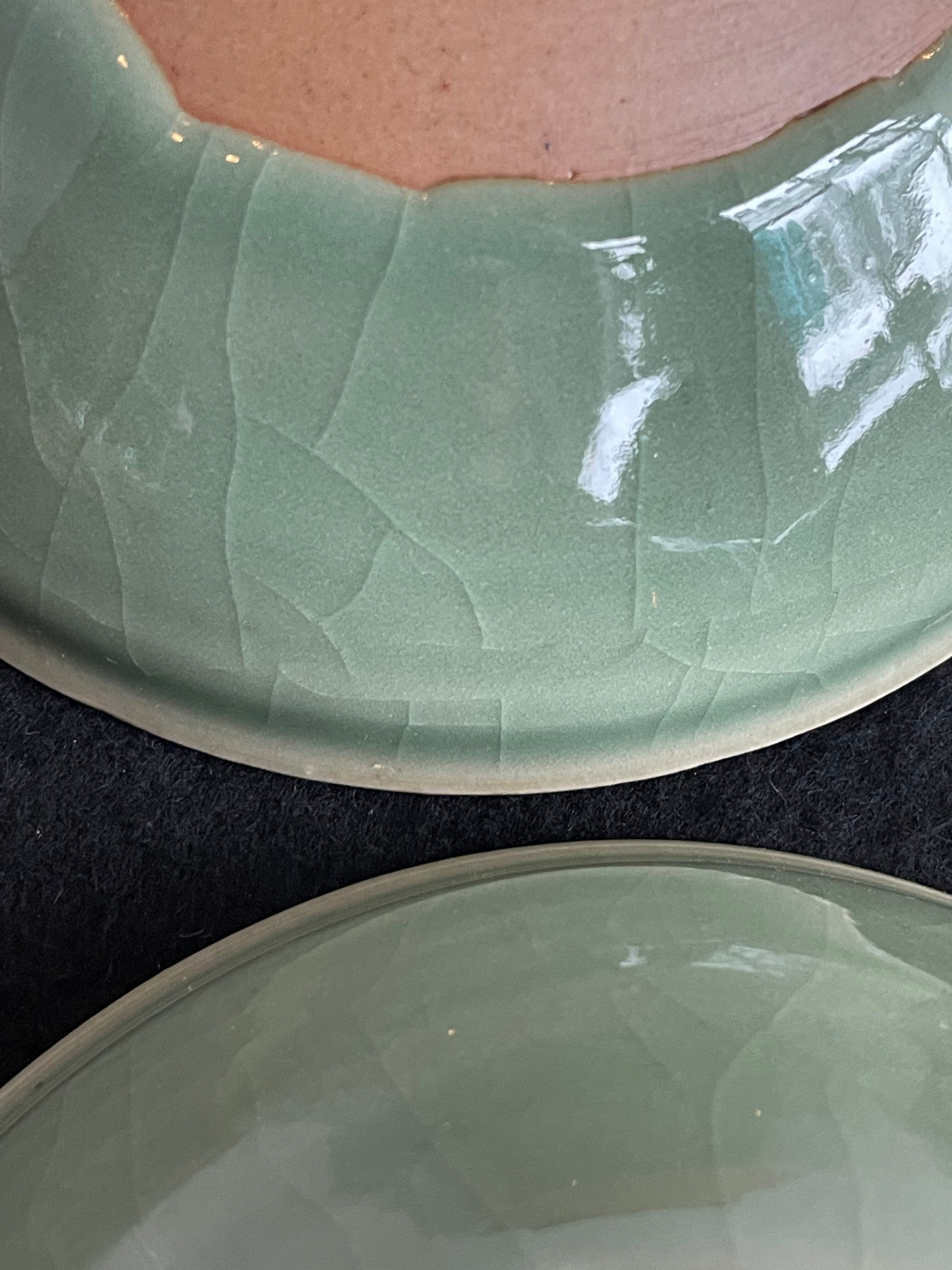 旧家より譲り受けた翡翠色の青磁、中鉢(平茶碗)4客。