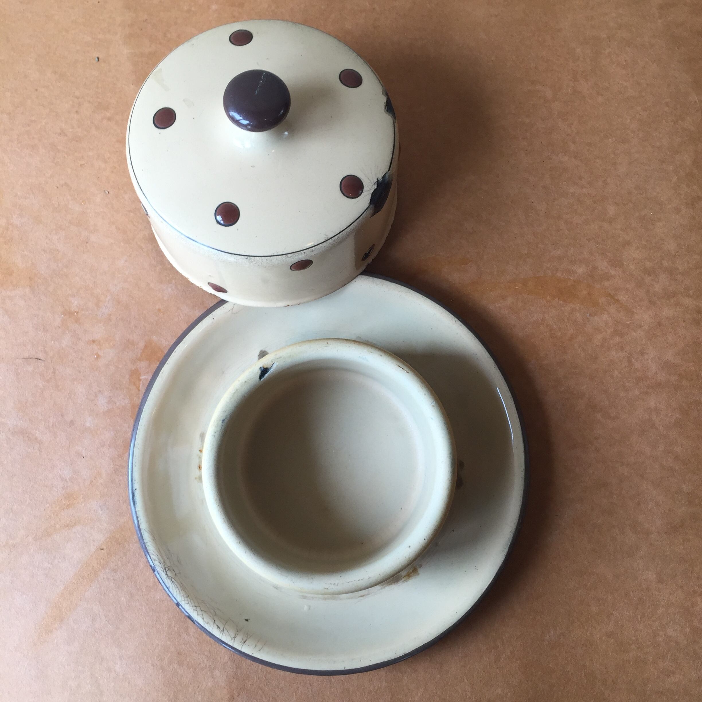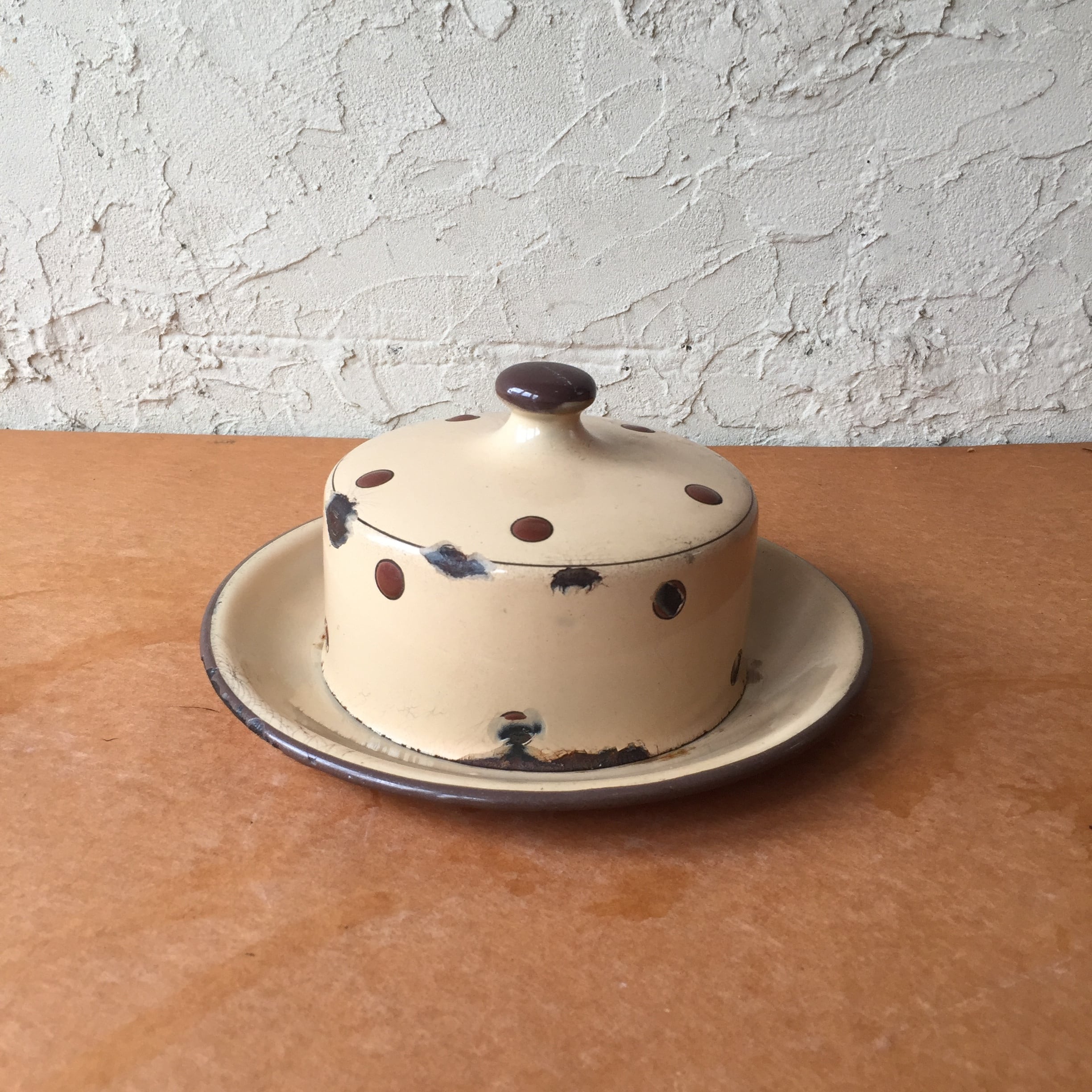 England antique バターケース チーズ 琺瑯 ホーロー ホウロウ 水玉 ドット