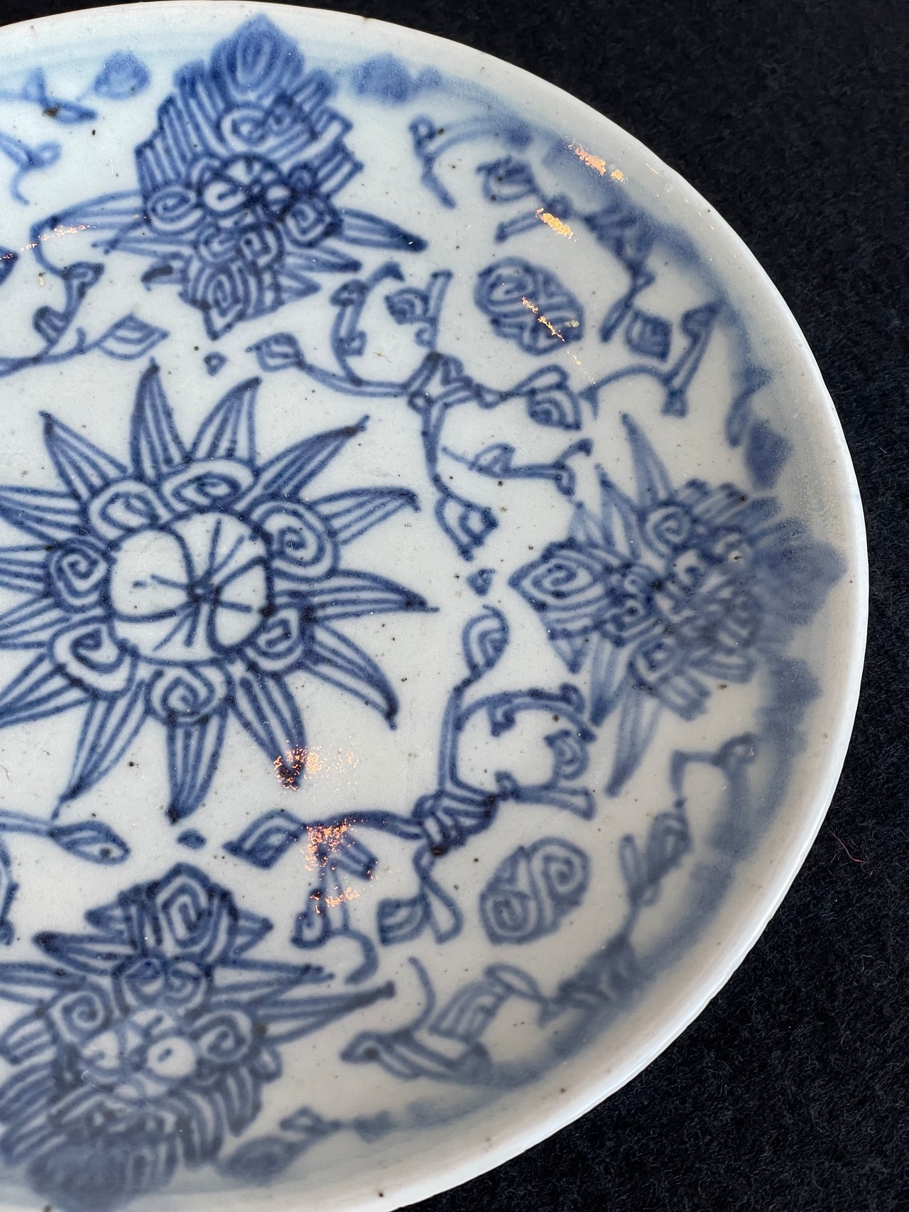 中国古玩 明末清初 清朝 乾隆期 蘇鉄 向日葵唐草花 染付 景徳鎮 古窯