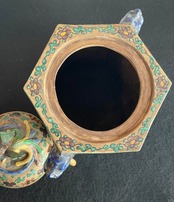 玉獅子飾付 三つ足香炉 耳環 蓋 香炉 アンティーク 獅子飾 六角形