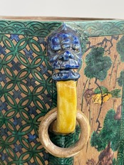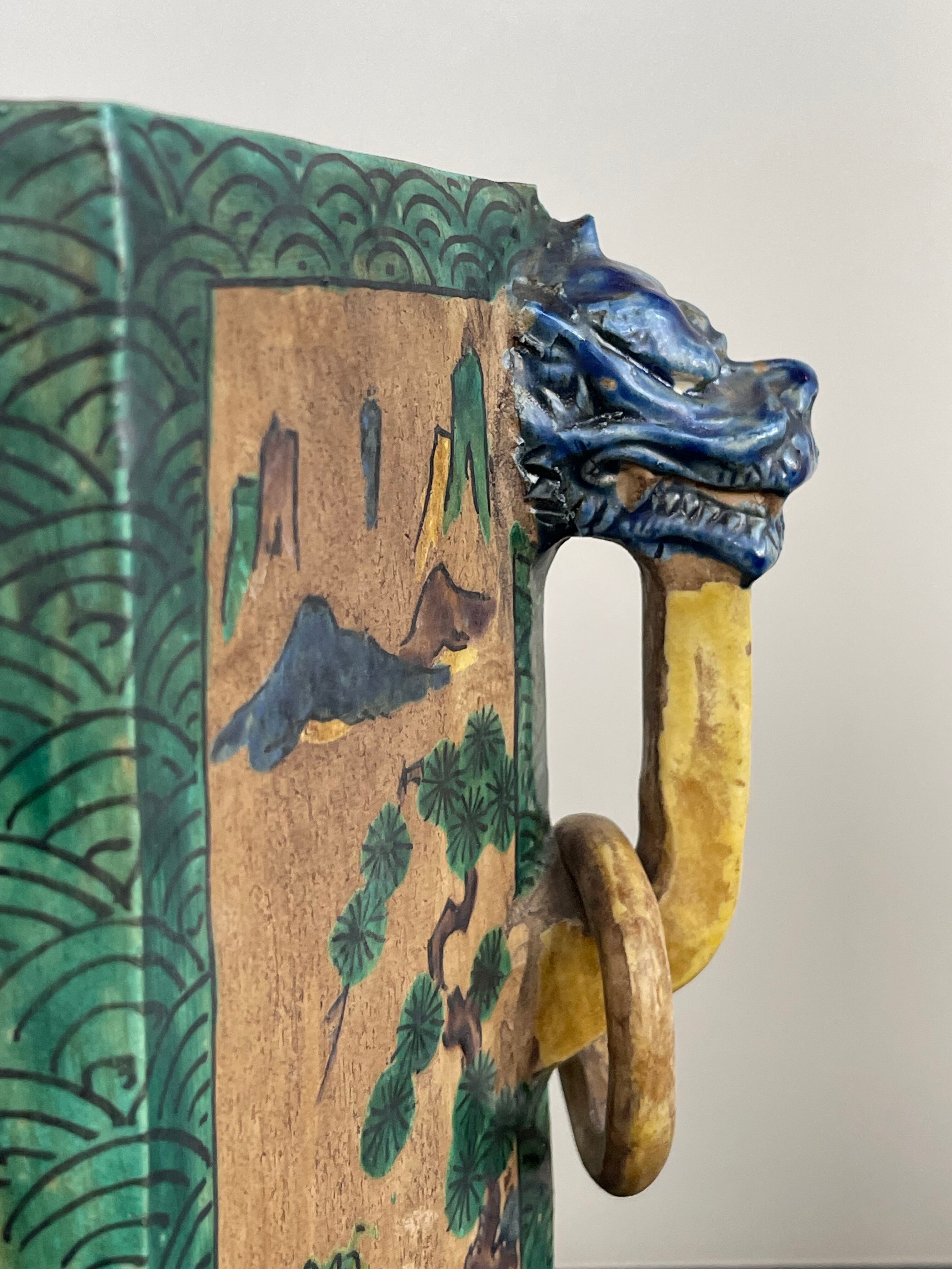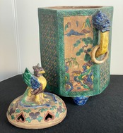 希少 古九谷 青九谷 青手 香炉 角福 1800年 香炉 鳳凰 獅子 吉田屋