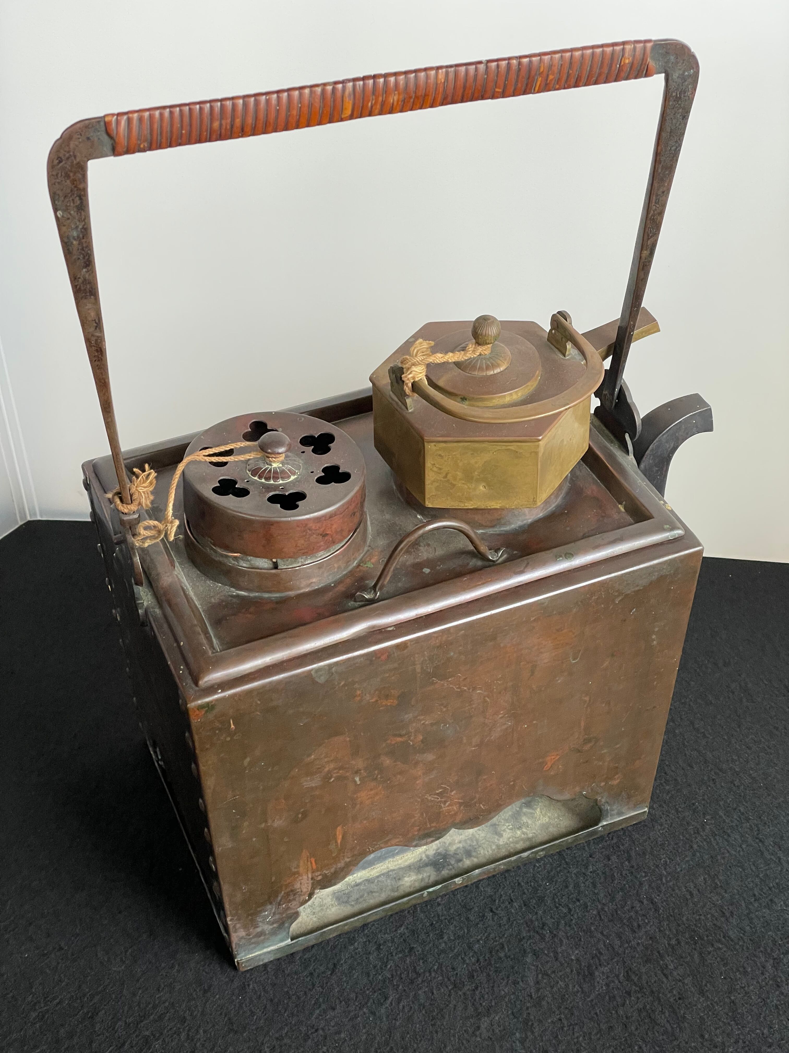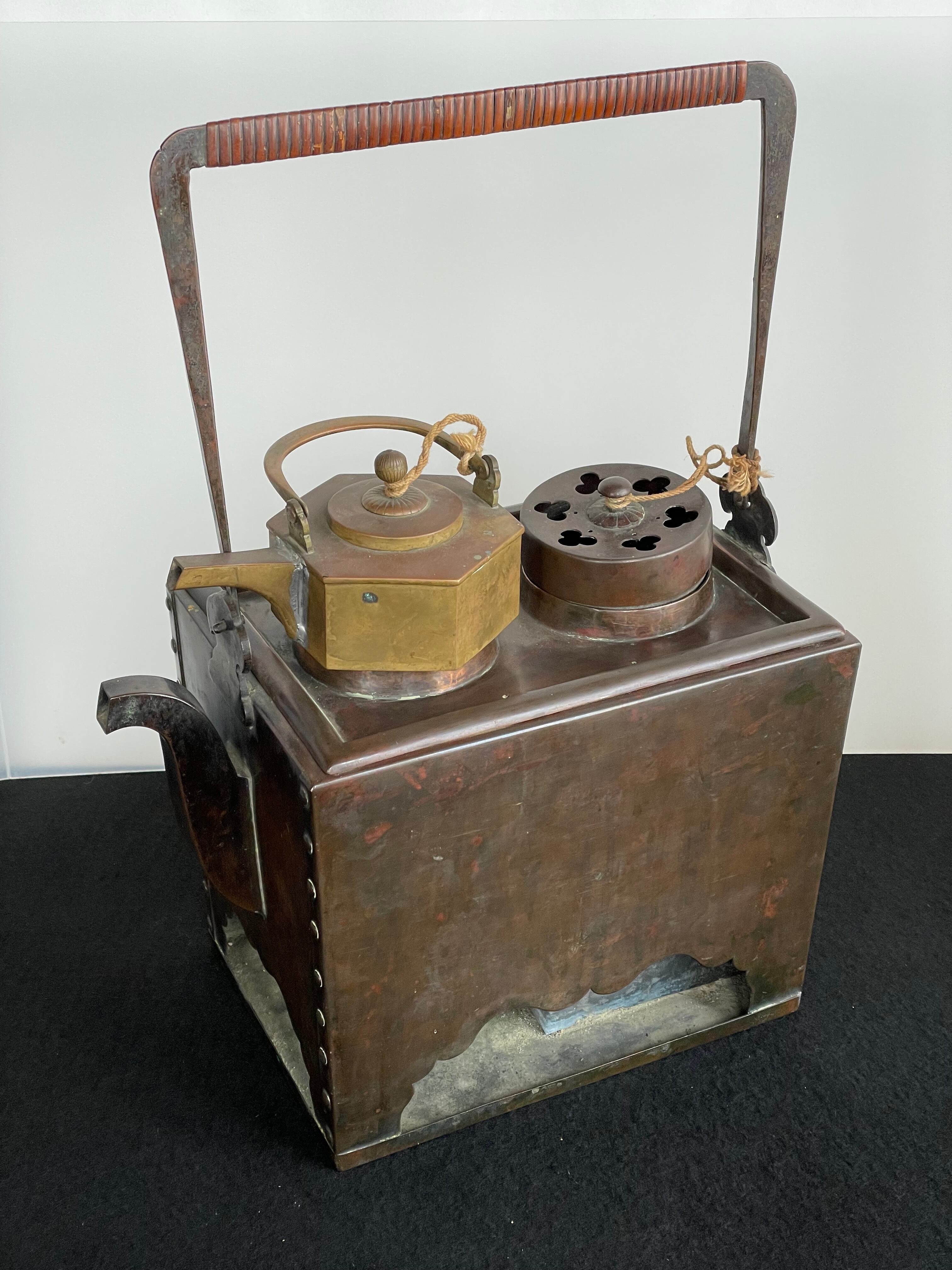Japan VIntage 時代物 銅製 籐巻提手 酒燗器 燗銅壷 野燗炉 銅壺 薬燗壷 急須 骨董 古美術